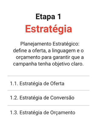 03 Etapas, igualmente importantes, que juntas formam a base da nossa metodologia: Estratégia, Conversão e Resultado.